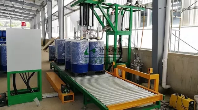 四槍單計量,棧板一次擺放四桶,依次連續(xù)灌裝,有效節(jié)省時間及空間,提高灌裝效率;