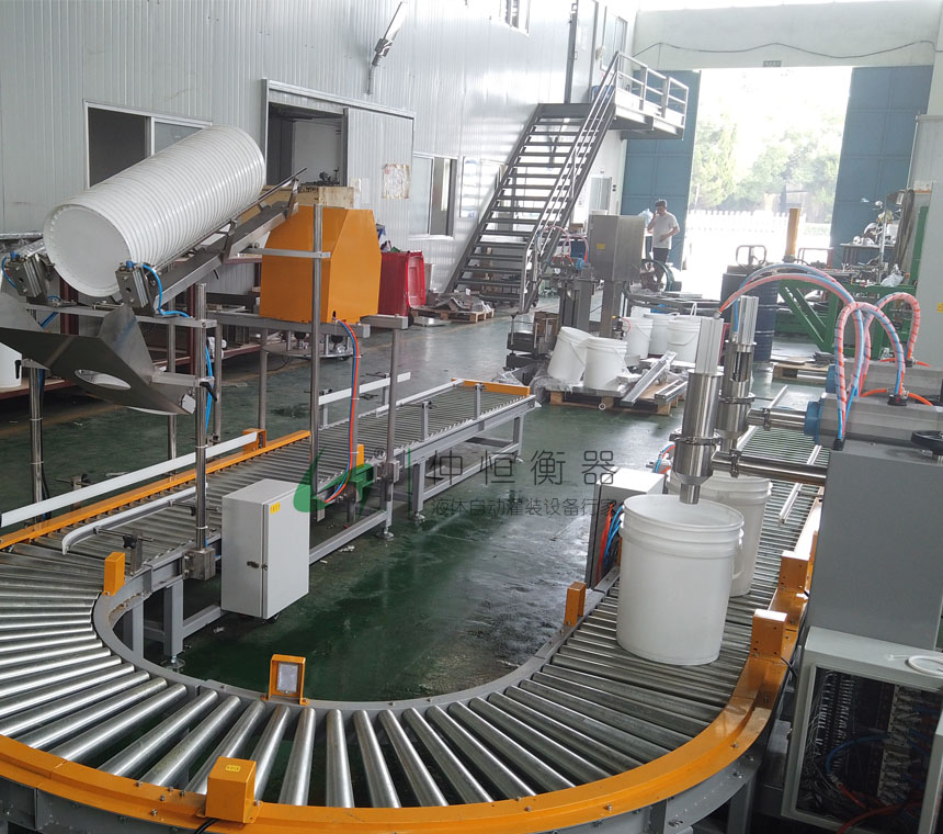 ■ 設備自動將空桶輸送到灌裝區(qū)盡心灌裝,灌裝結束后,動力滾筒自動將滿桶輸送到上蓋區(qū)上蓋壓蓋,后端可配置自動貼標機,自動碼垛機,前端空桶區(qū)亦可配置自動分桶機