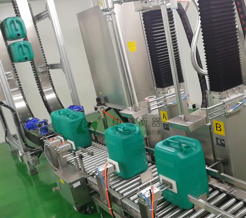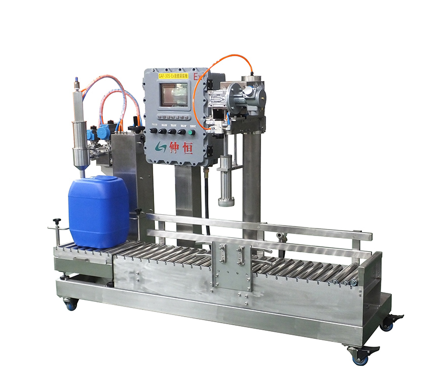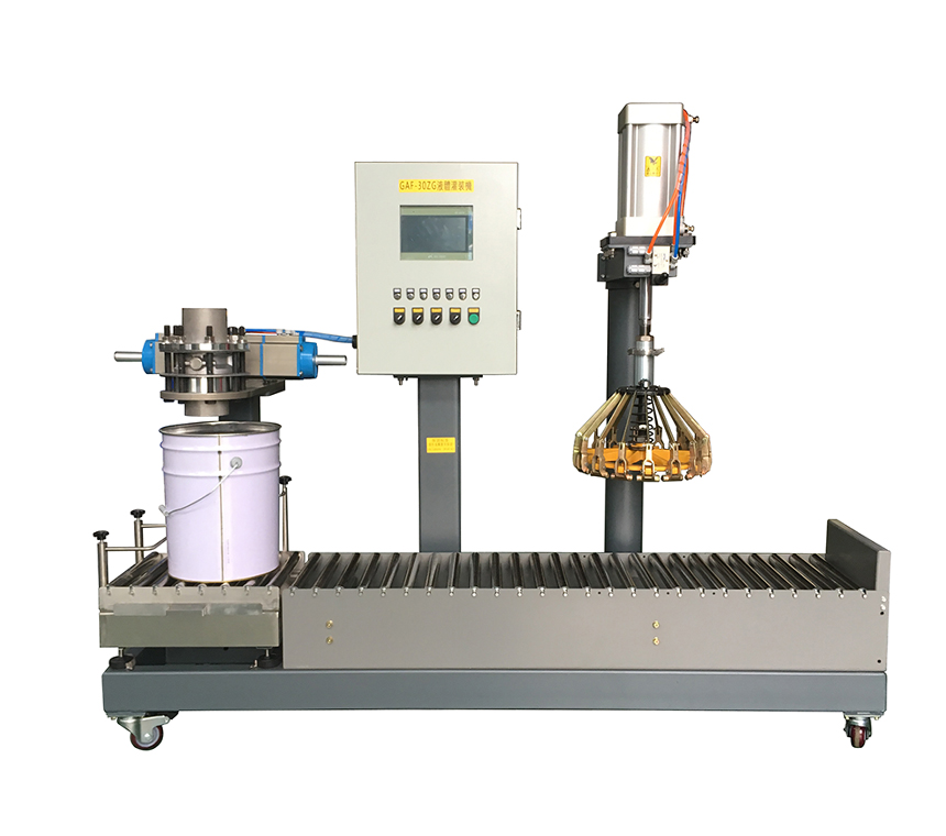 GAF-30L2-AS自動灌裝生產線系統采用可編程PLC控制器、全中文引導操作,性能可靠;自動輸送、自動定位、自動灌裝、自動上蓋擰蓋;秤臺無桶禁止灌裝,差壓式零時差撞桶保護;有信號指示燈即時顯示,超差自動報警。