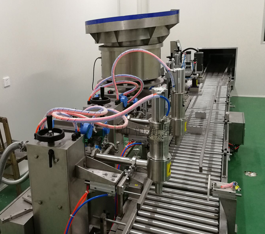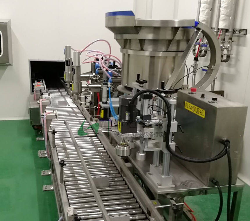 ■ 自動輸送、自動定位、自動灌裝、自動上蓋擰蓋、自動貼標(biāo);