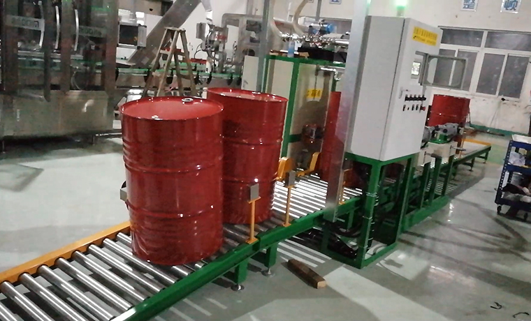 回旋式輸送,包裝桶自動輸送、定位,自動灌裝,氣動鎖蓋,極大程度節省空間及人力;灌槍高度、限位機構可調,安全可靠,極大程度提高效率節省人力。